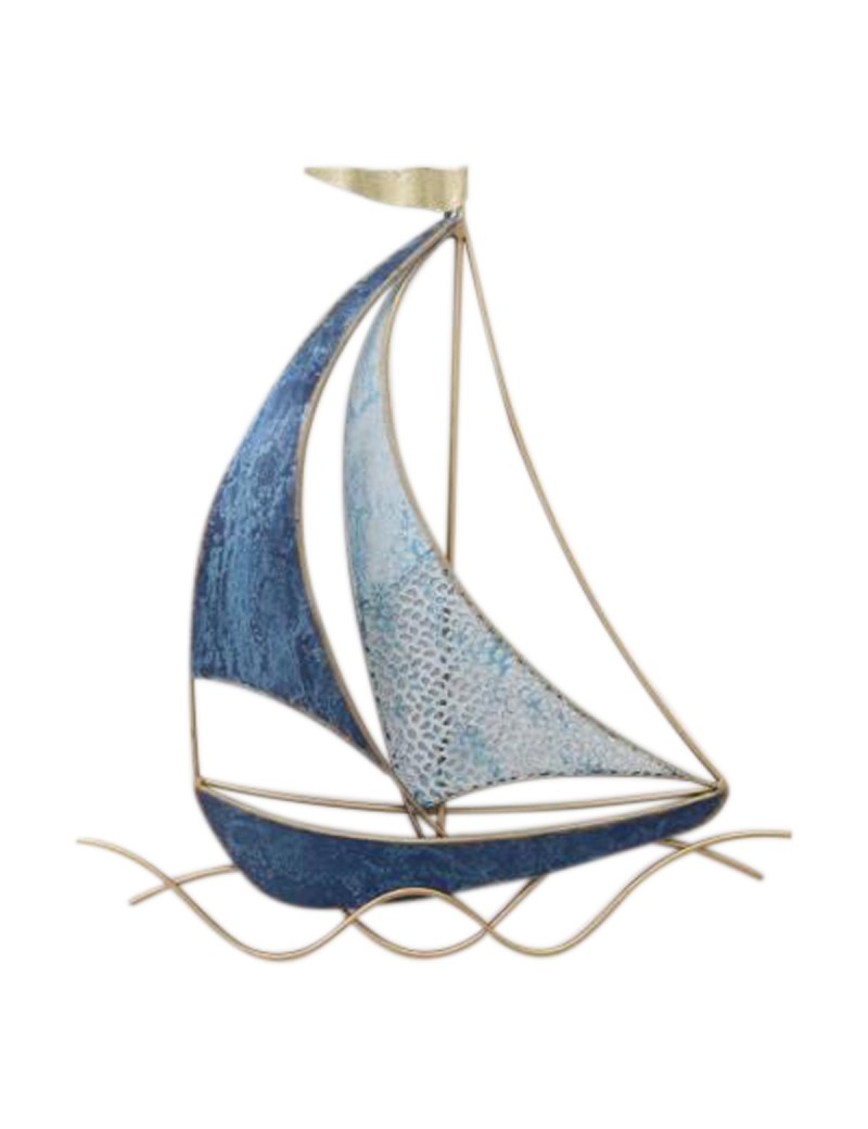 Décoration murale Bateau Voilier en métal couleur Bleu Marine Doré 34cm