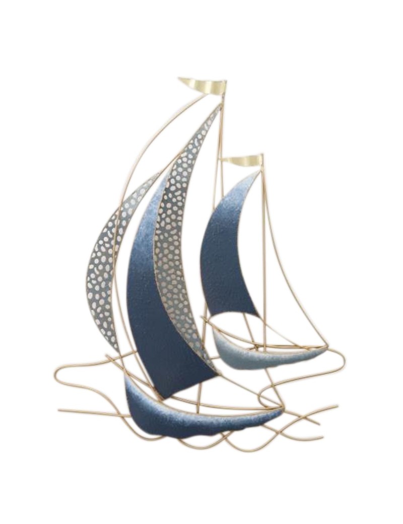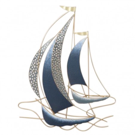 Décoration murale Voiliers Bateaux en métal de 60cm Bleu et Doré