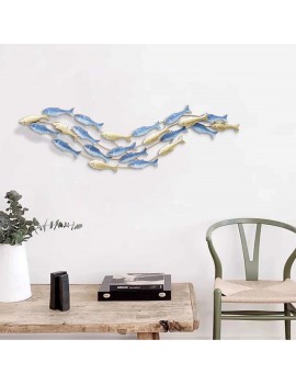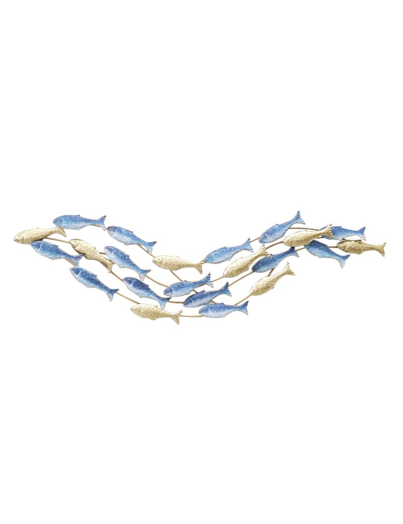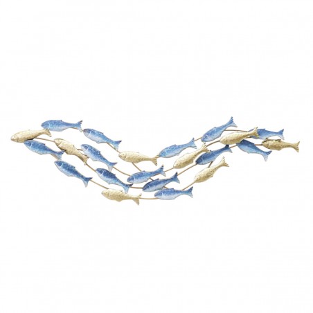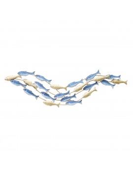 Décoration maison bord de Mer Océan, banc de Poissons en métal à suspendre en forme de vague.