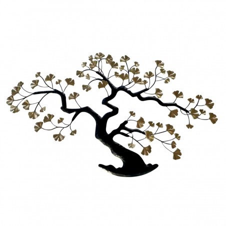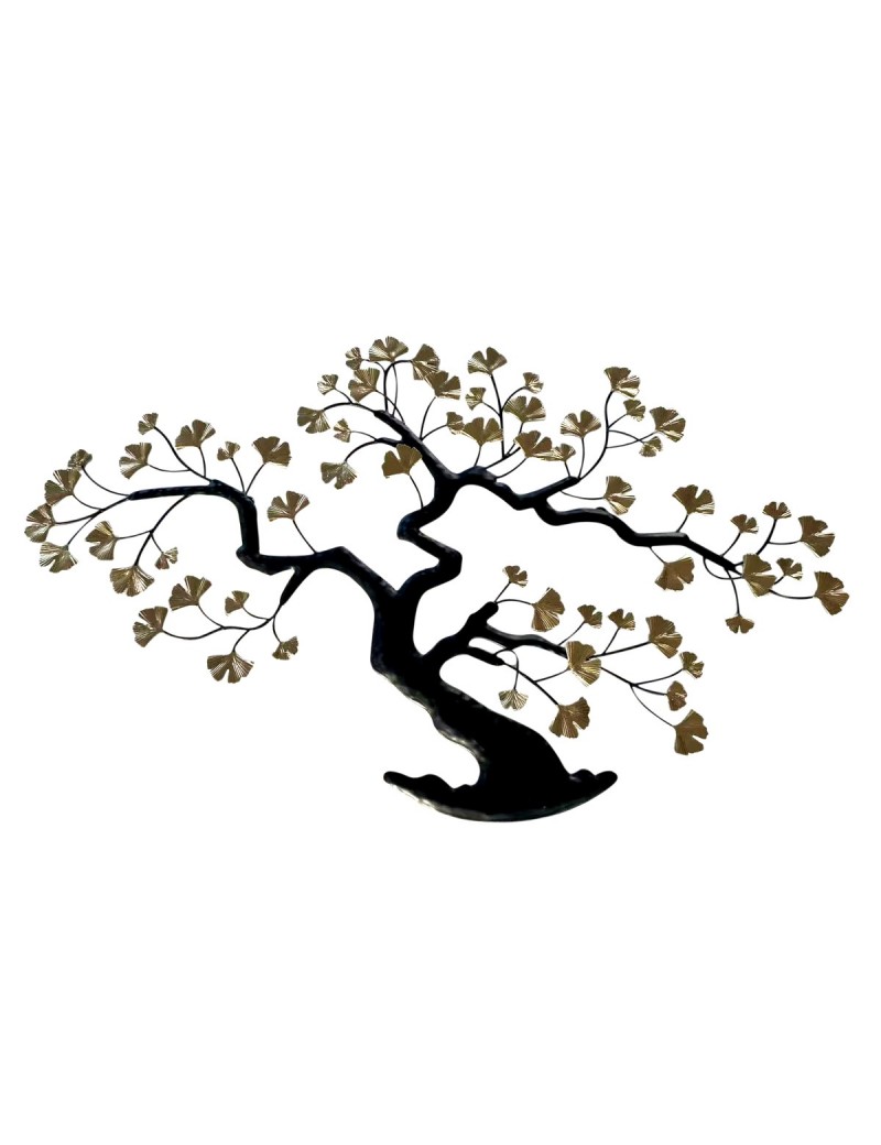 Décoration murale en métal à suspendre, Arbre inspiration Ginkgo couleur Noir Brun et Or.