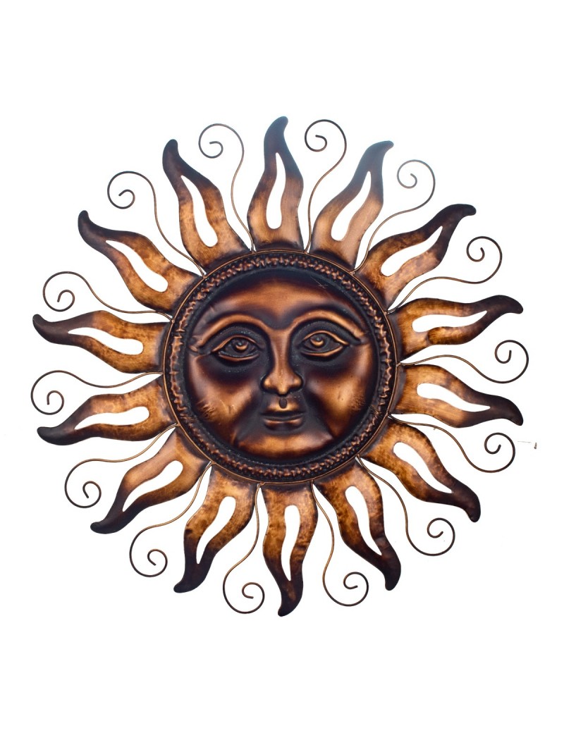 Décoration murale astre SOLEIL rond en métal de 91cm couleur Bronze cuivre