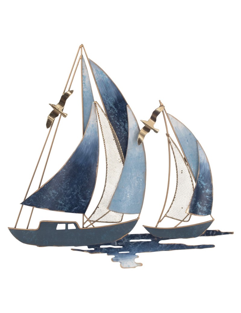 BATEAUX Voiliers Décoration murale en métal 50cm Bleu et Doré