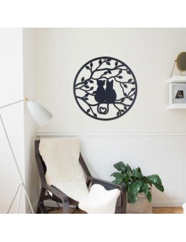 Décoration murale chats amoureux dans un arbre.