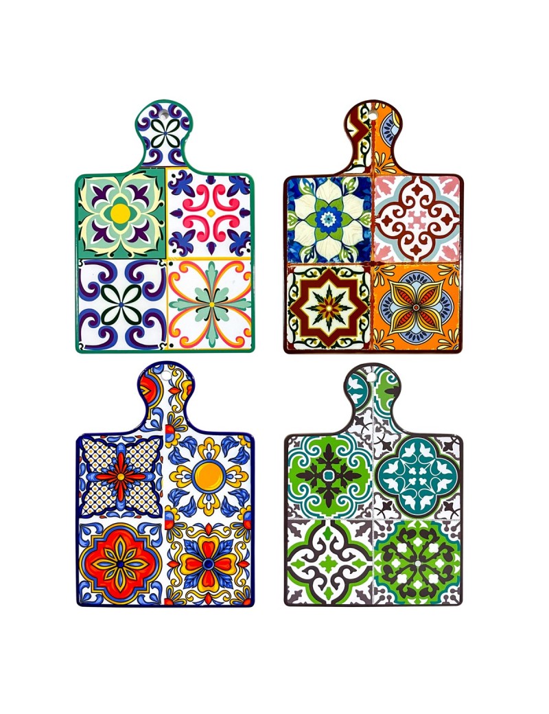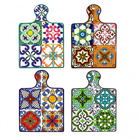 Décoration Cuisine Table en Fête, un Lot de 4 Dessous de Plat Planche à Découper en Céramique au Design très coloré Carreau de Ciment Rétro.
