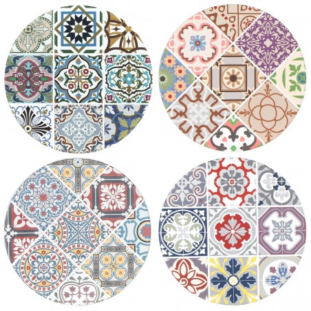 Décoration Art de la Table, dessous de Plat rond en céramique Design Carreau de ciment Vintage.