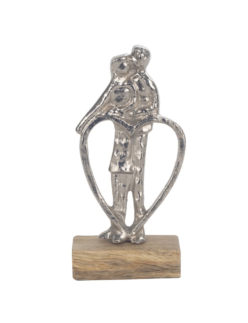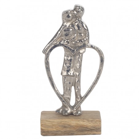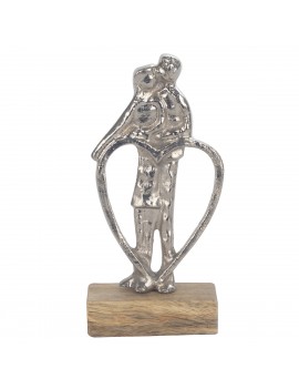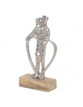 Statue Décoration en Bois et métal couple Amoureux avec Coeur 22cm