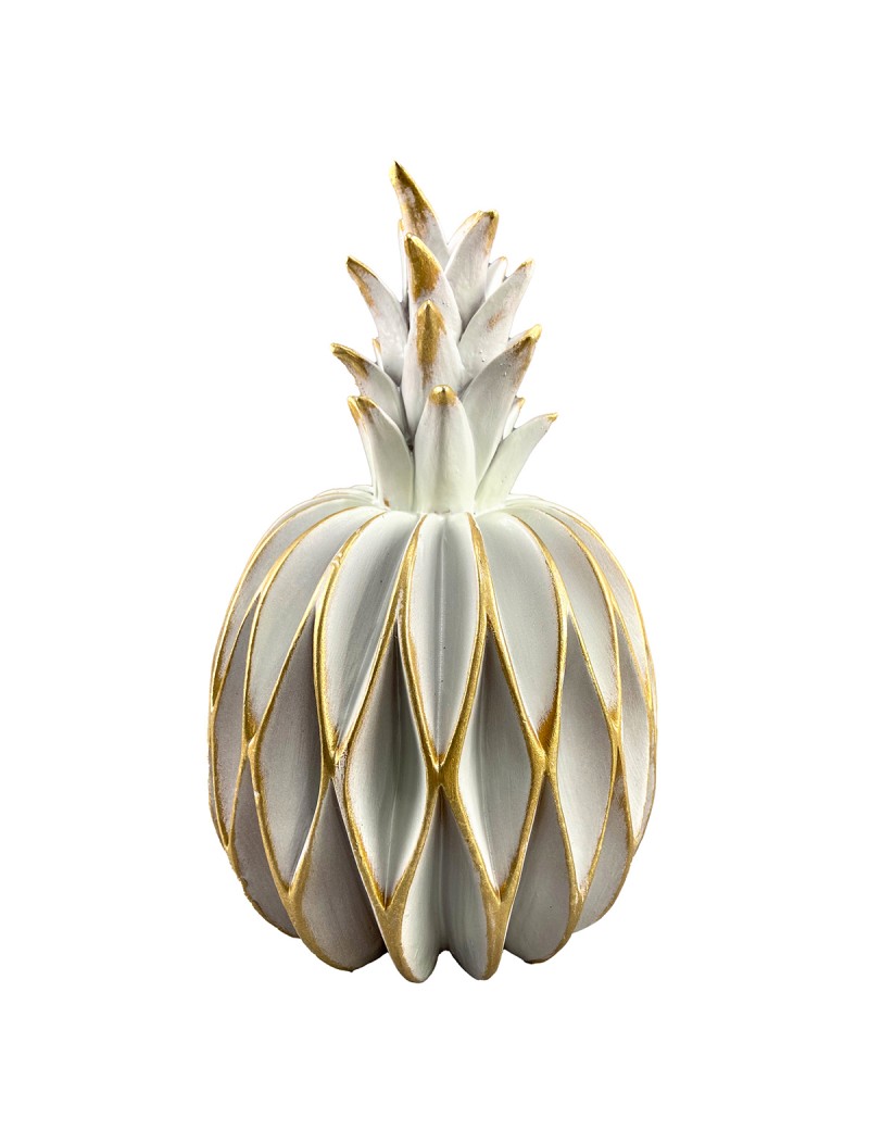 ANANAS Statue décoration couleur Blanc écru et doré hauteur 27cm
