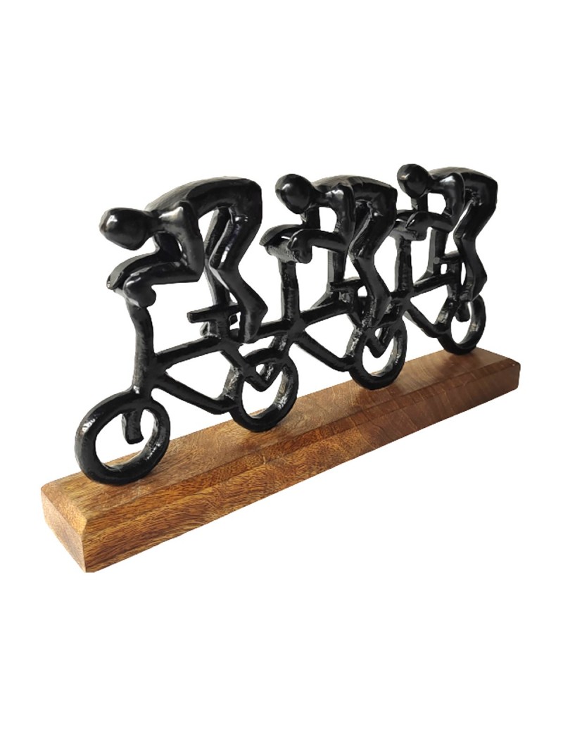 Statue Décoration Cyclistes Vélo en métal Noir et Bois longueur 31cm