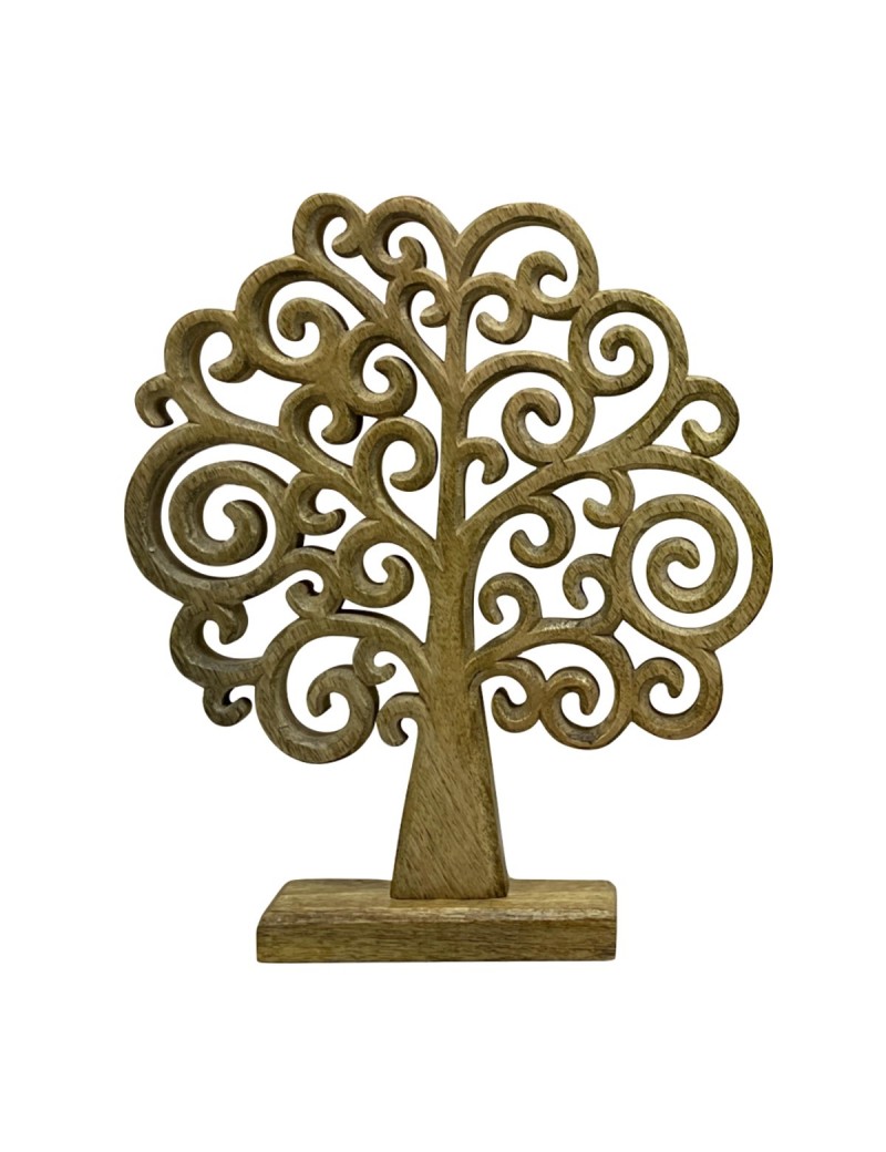 Décoration style Maison de Campagne, statue en bois Arbre feuillage en volutes couleur Naturel de hauteur 33cm.