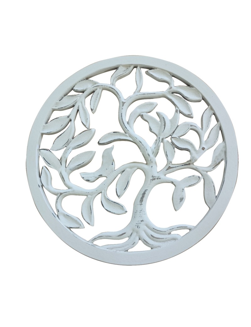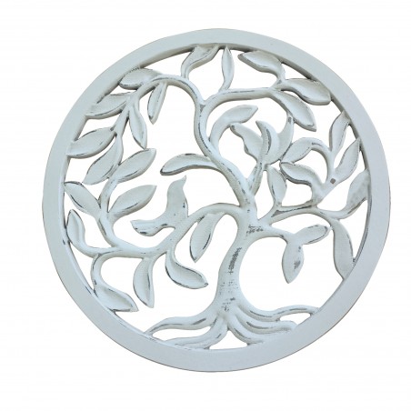 ARBRE de Vie Décoration Murale en Bois Applique ronde couleur Blanc de 40cm