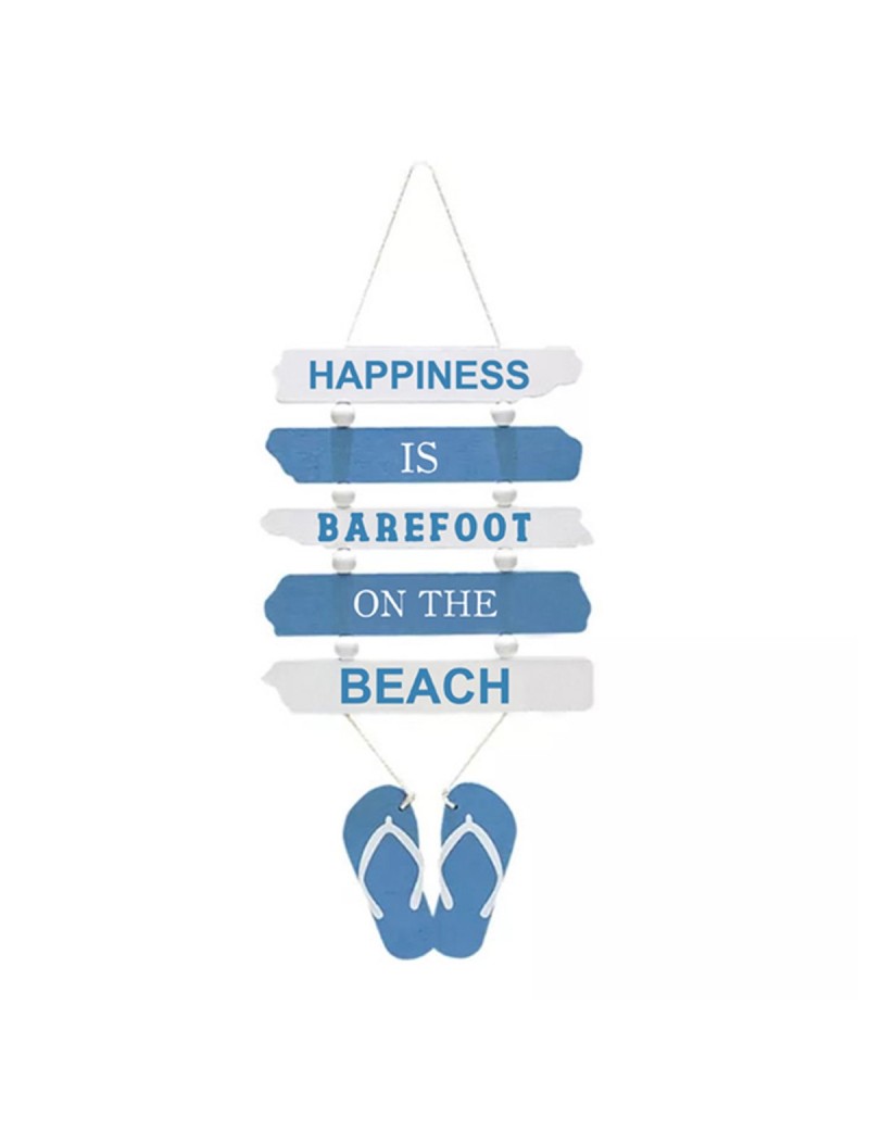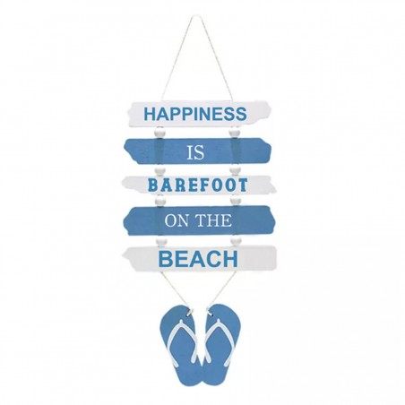 Décoration Murale Enseignes Panneau Plage Tong en Bois couleur Marine et Blanc