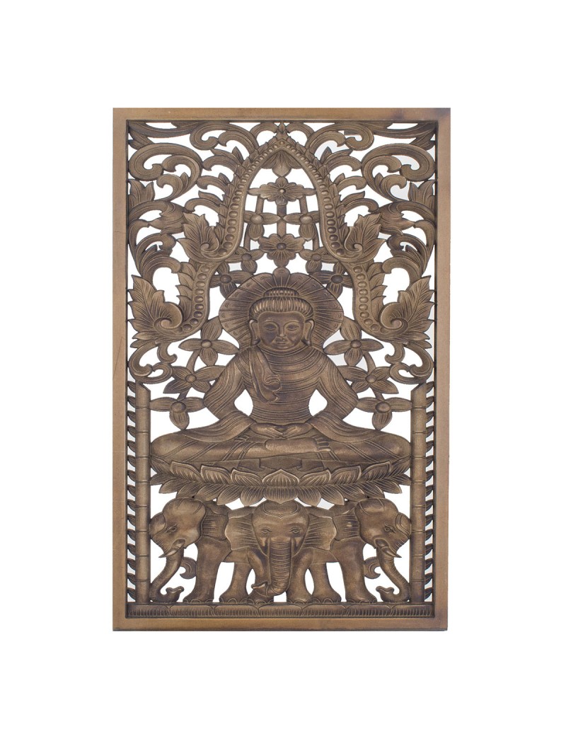 Décoration Zen collection Bouddha, une Applique murale en relief de Bouddha Nénuphar éléphant de couleur Brun.