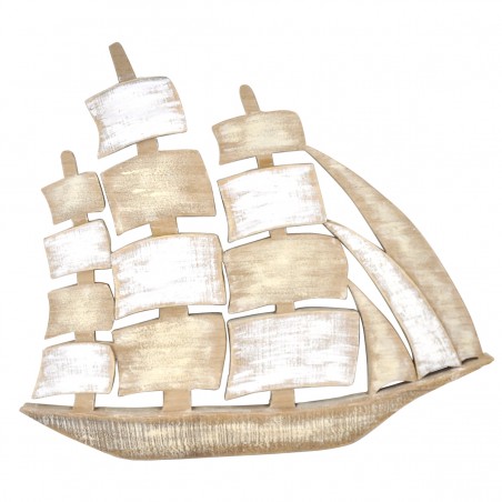 BATEAU Navire Voilier 3 Mâts Décoration murale en Bois 60cm couleur Blanc Beige