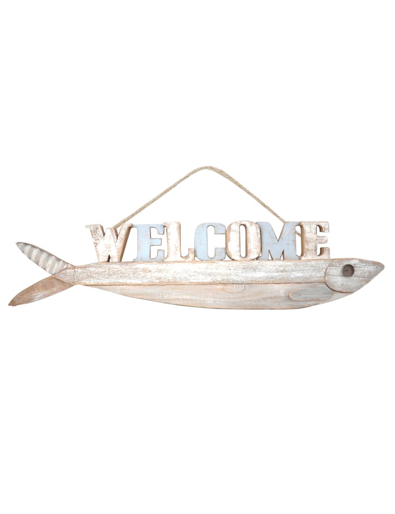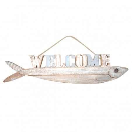 Décoration murale Welcome POISSON en Bois aspect vieilli de 81cm