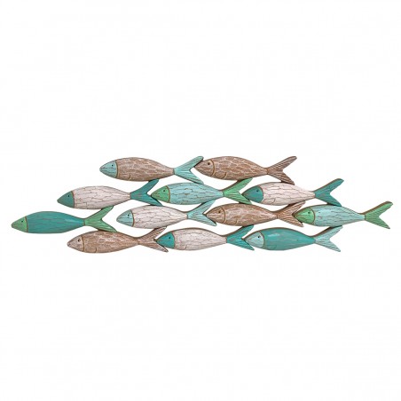 POISSONS Décoration murale en Bois de 81cm couleur Bleu Vert effet vieilli