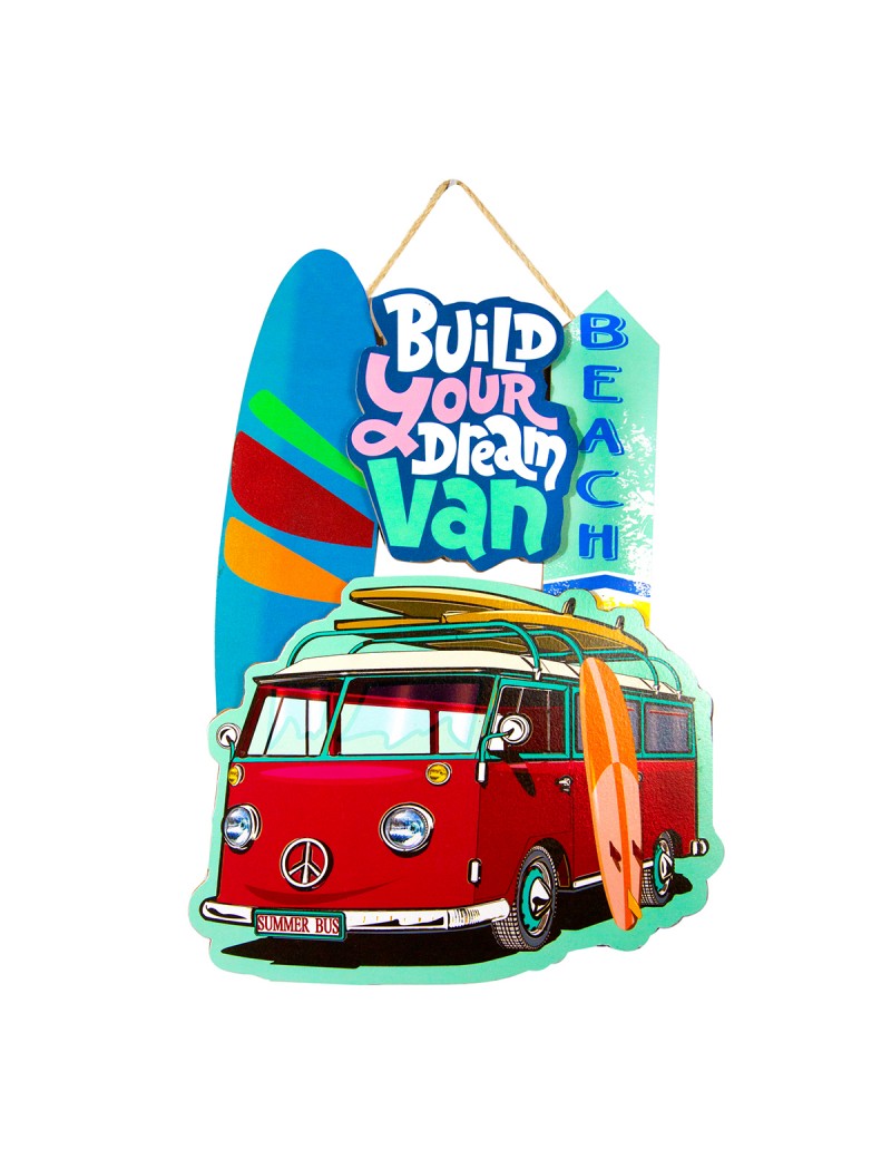 Décoration murale VAN rouge Rétro Surf Plage évasion 46x34cm
