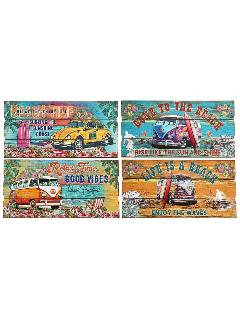 Panneau Enseigne Décoration murale en Bois 60cm Van rétro SURF vacances Vintage