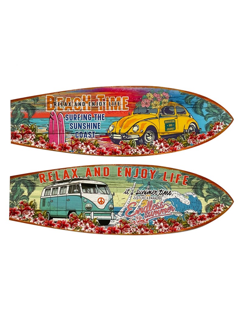 Décoration murale Planche SURF en Bois 75cm Vacances Vintage Van