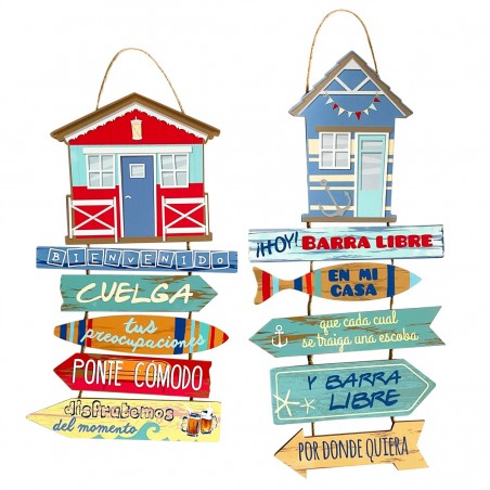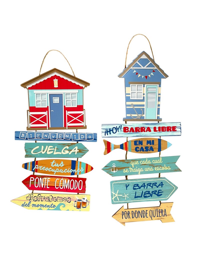 Décoration Maison du bord de Mer Océan, enseignes en Bois avec inscriptions colorées en Espagnol.