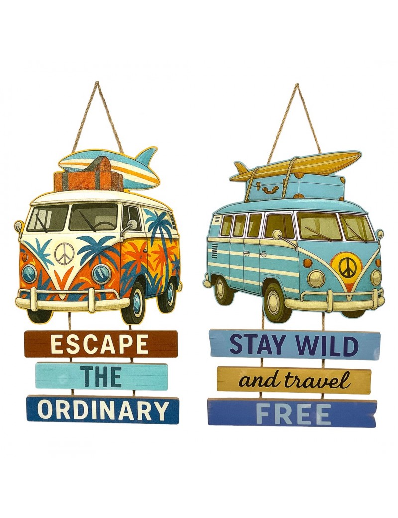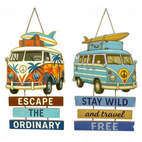 Décoration murale Panneau en Bois 60cm Van Surf vacances rétro Vintage