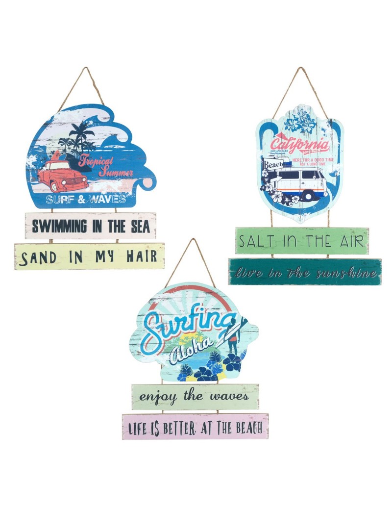 ENSEIGNE rétro SET de 3 en bois à suspendre décoration été Californie Surf