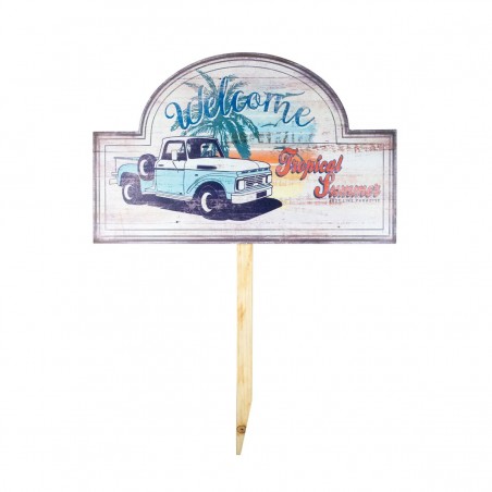 Un panneau rétro à planter au sol en bois mdf , décoration pick up vintage, plage été tropical