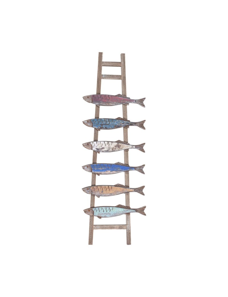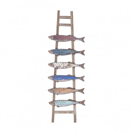 Décoration murale originale, une échelle en Bois à suspendre avec des Poissons.