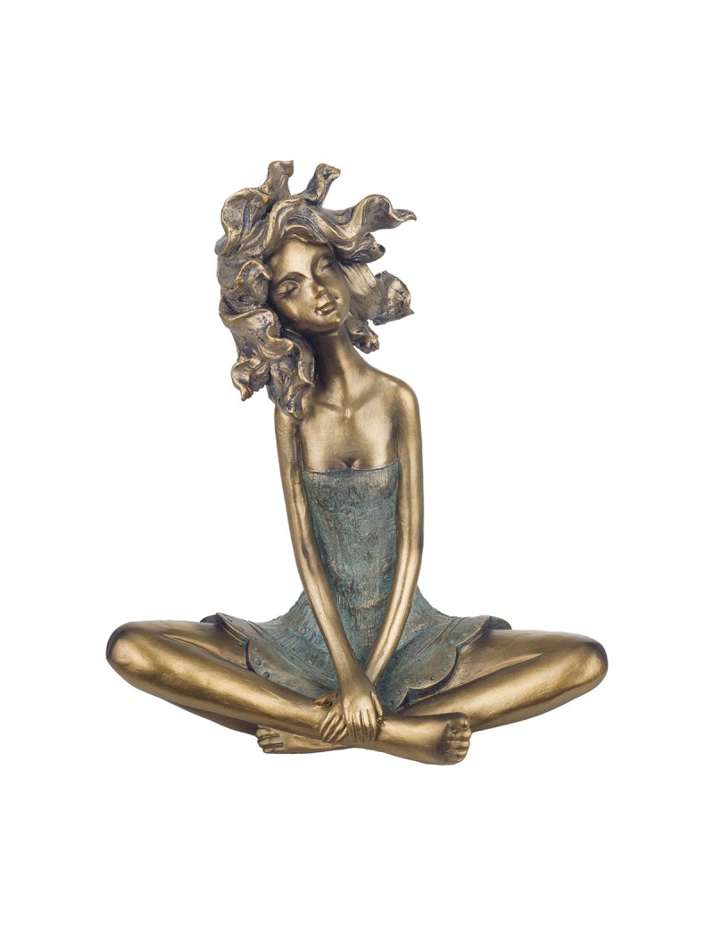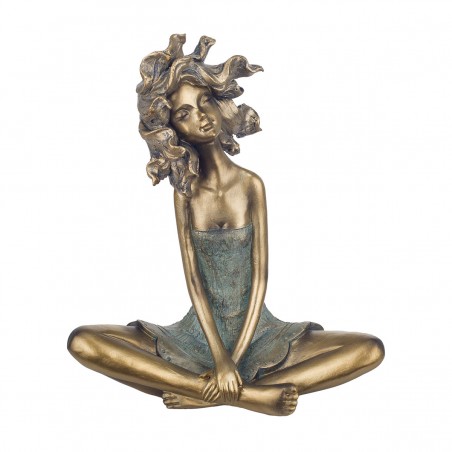FEMME assise les cheveux au vent Statue Décoration couleur Bronze