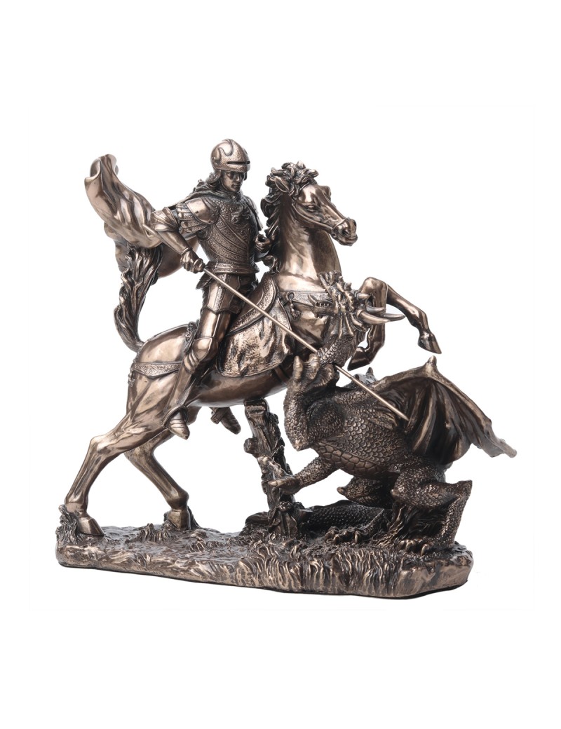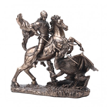 Statue Saint GEORGES terrassant le Dragon 17x16cm couleur bronze