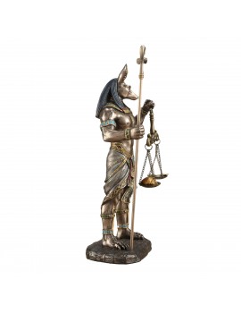 Décoration collection Mythologie Egypte ancienne, une statue de 27cm d'Anubis dieu funéraire debout tenant la balance.
