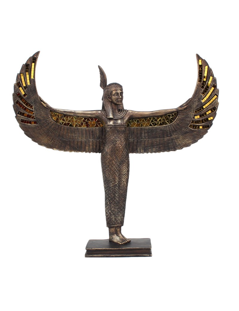 Statue Décoration collection Egypte Antique, Déesse Isis protectrice couleur Bronze et Dorée.