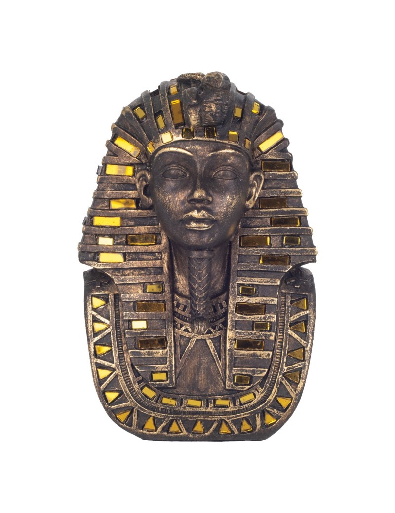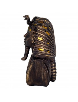 Décoration collection Egypte Antique, Statue buste de Pharaon hauteur 17cm couleur Brun bronze doré.