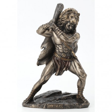 Décoration collection Mythologie, Statue d'Hercules Héros grec de couleur Bronze hauteur 25cm.