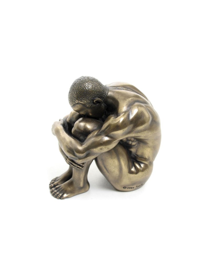 Une statuette décoration neuve d'un homme nu assis, de couleur bronze laiton.
