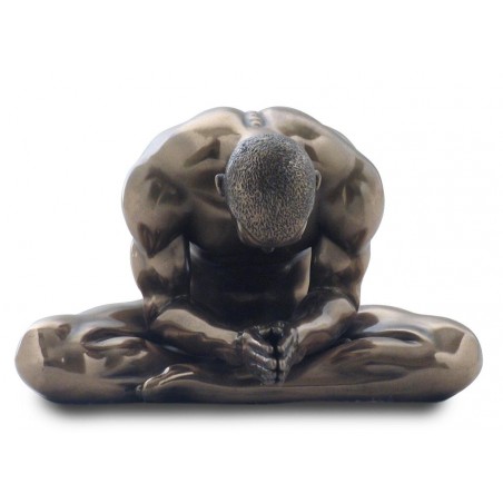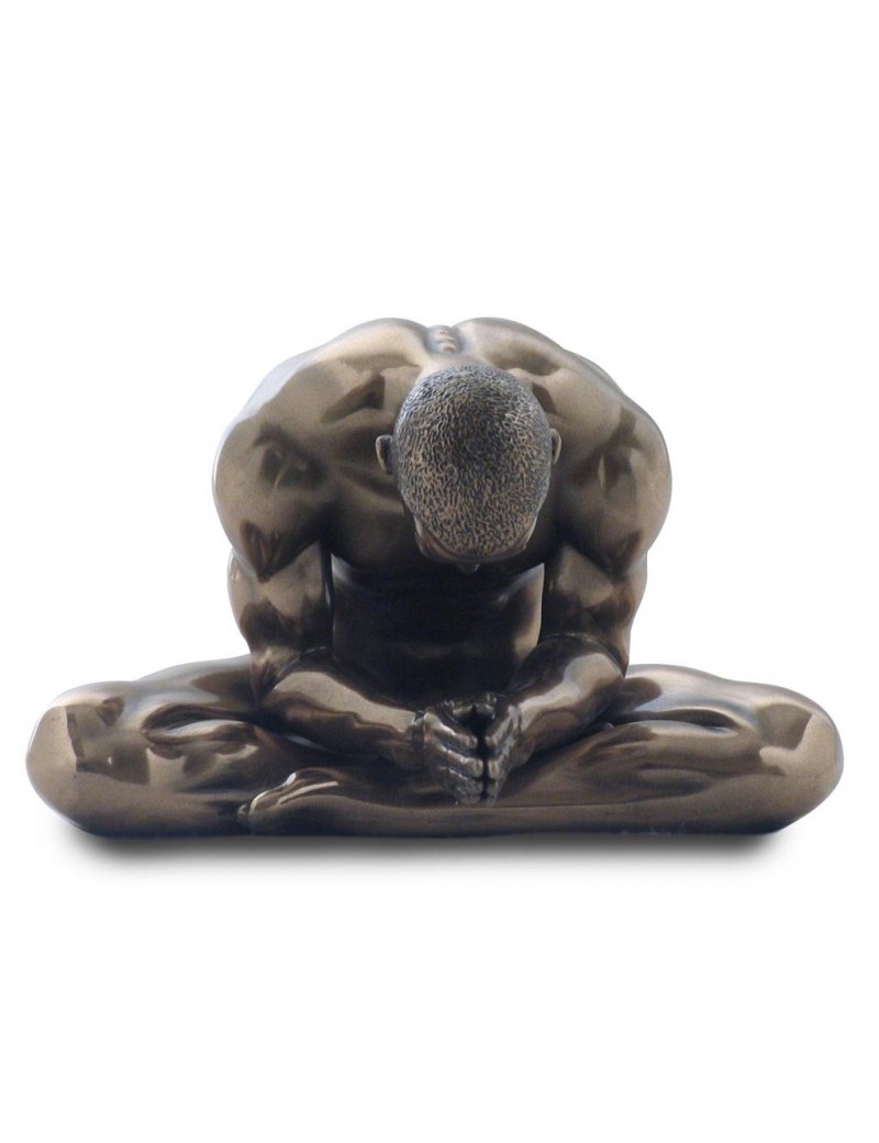 Une statue neuve en polyrésine d'un homme nu assis, de couleur bronze laiton, d'un design NU ARTISTIQUE.