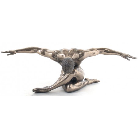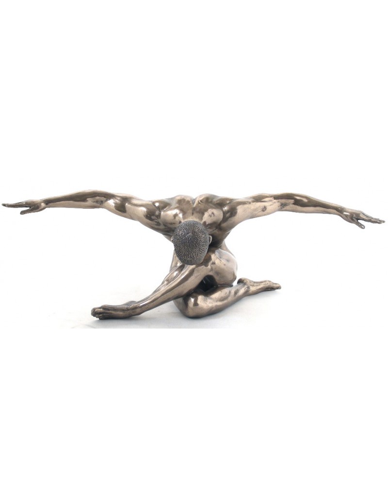 Une statue décoration de nu esthétique d'un homme assis les bras écarté en polyrésine de couleur bronze laiton, statue grand format de 44cm de large.