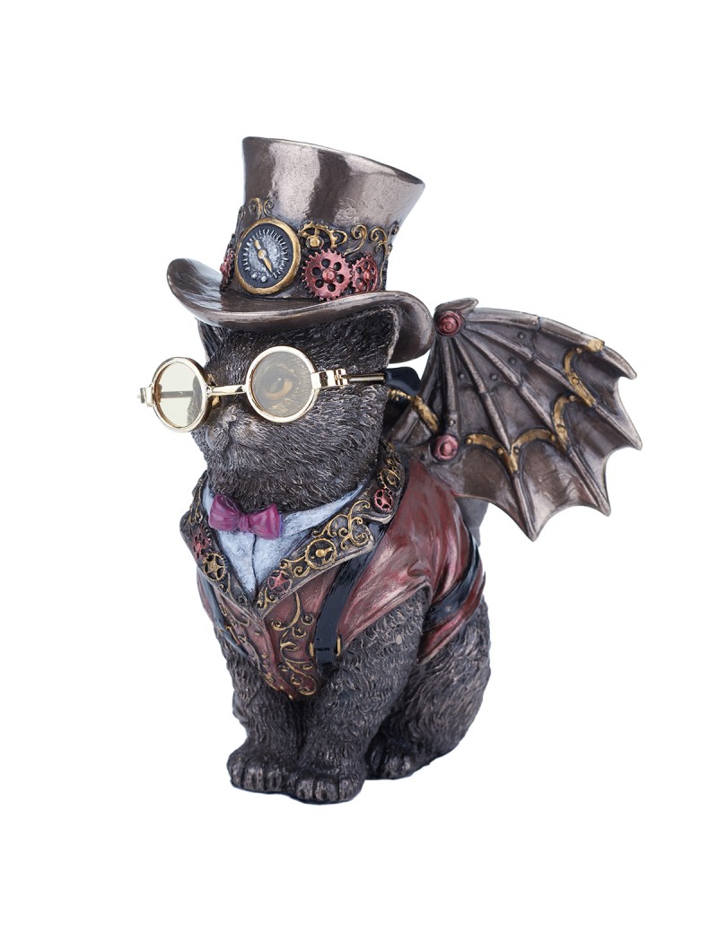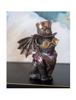 CHAT Inventeur Statue Décoration Design Victorien couleur brun Bronze