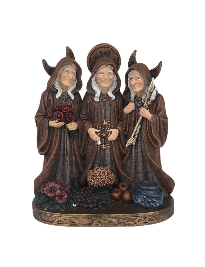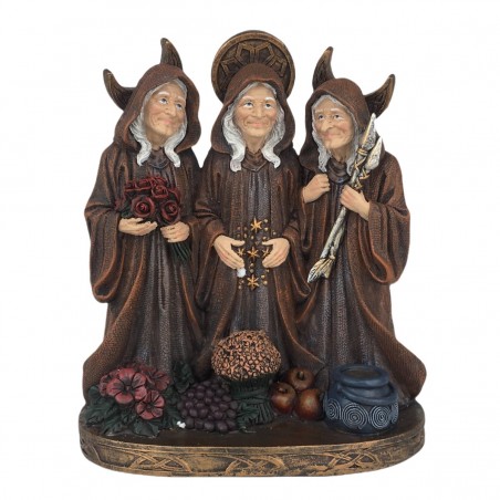 Statue 3 Sorcières Décoration vitrine Halloween 22cm couleur Brun.