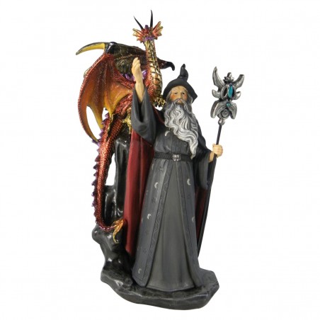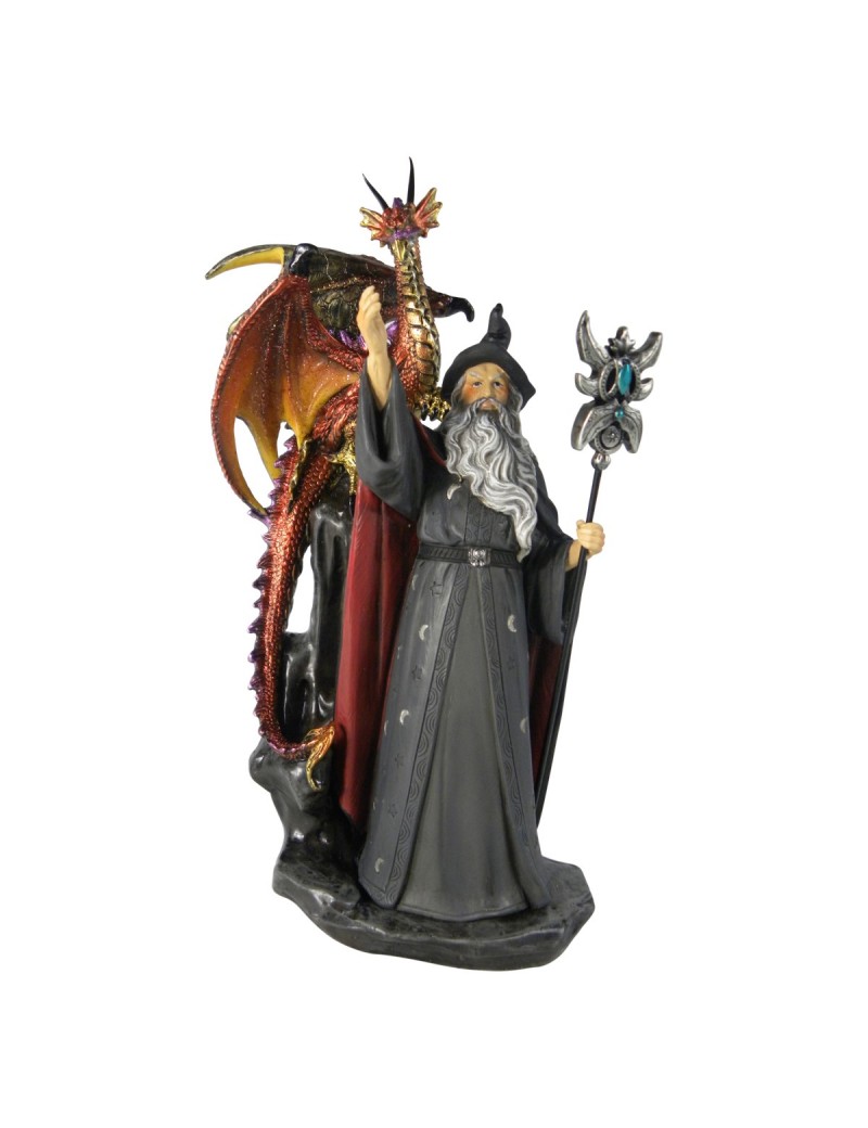 Décoration collection Heroic Fantasy, Statue de 27cm d'un Sorcier Magicien avec 1 Dragon.