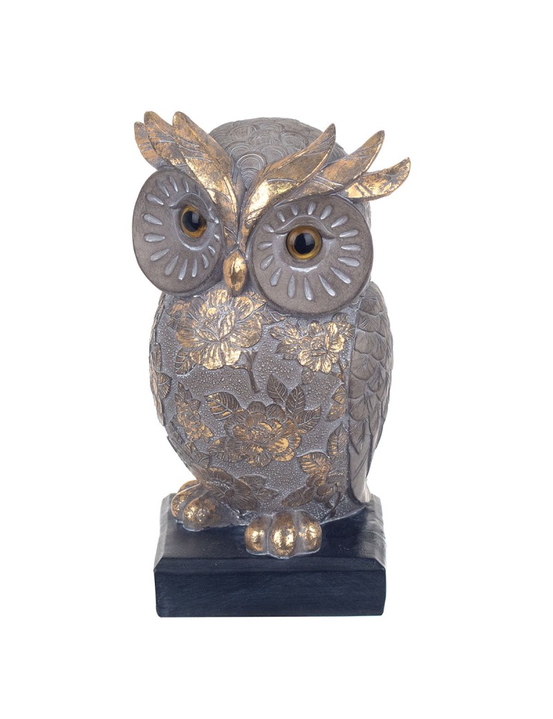 Hibou effet vieilli avec reflets Or sur socle noir