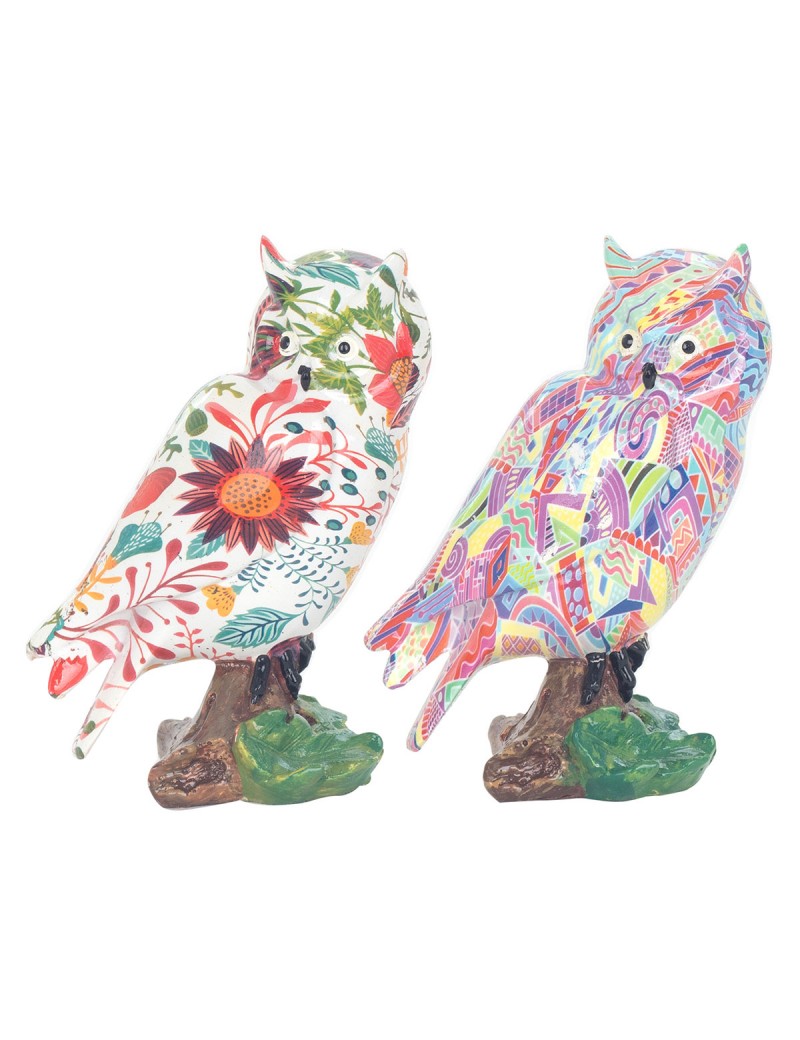 CHOUETTE Hibou sur un tronc Statue Décoration tout en couleur de 16cm