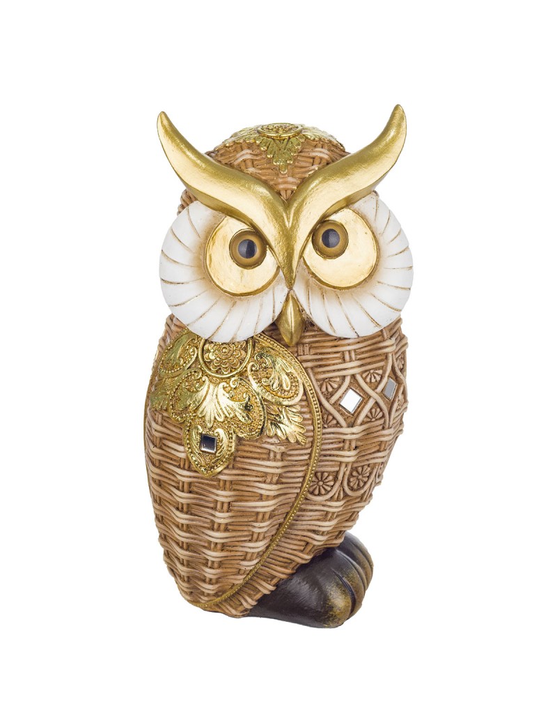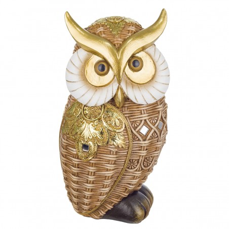 Décoration Collection Chouette Hibou, une Statue de 23cm de hauteur style Cannage couleur Naturel et Doré.