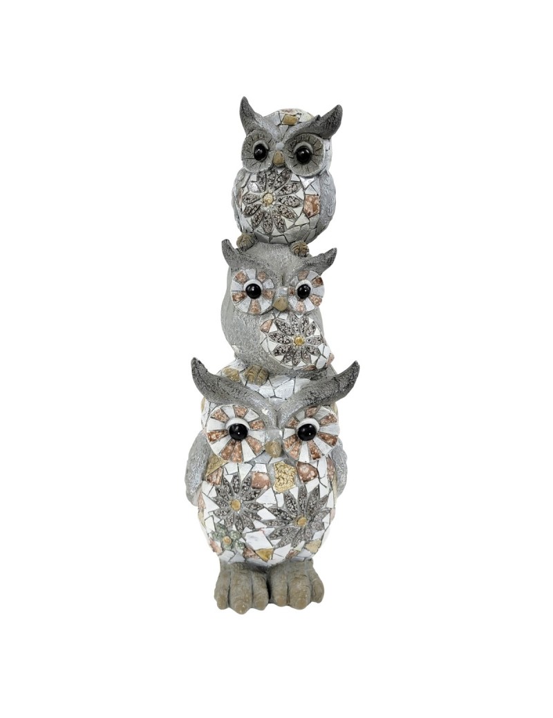 CHOUETTE Famille Statue Décoration Extérieure couleur Gris de 50cm