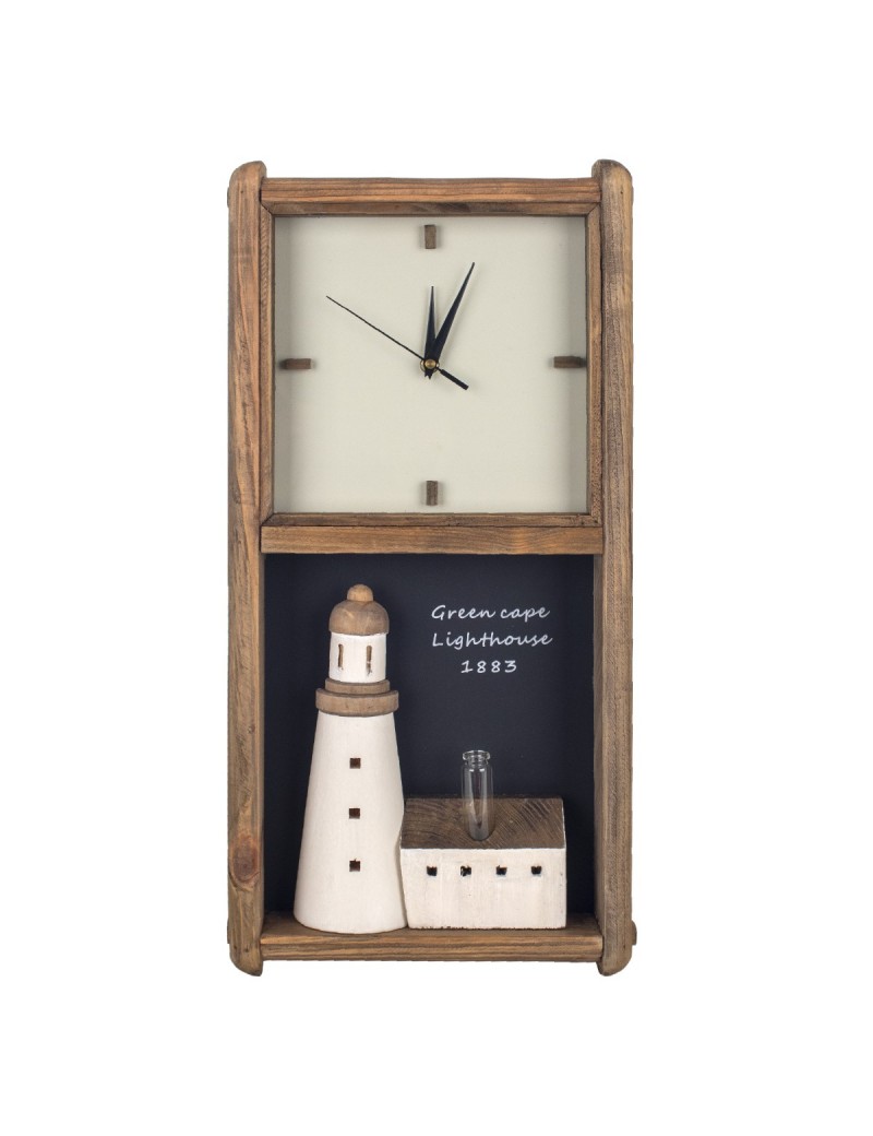 HORLOGE Murale en Bois PHARE Décoration Bord de Mer de 61cm