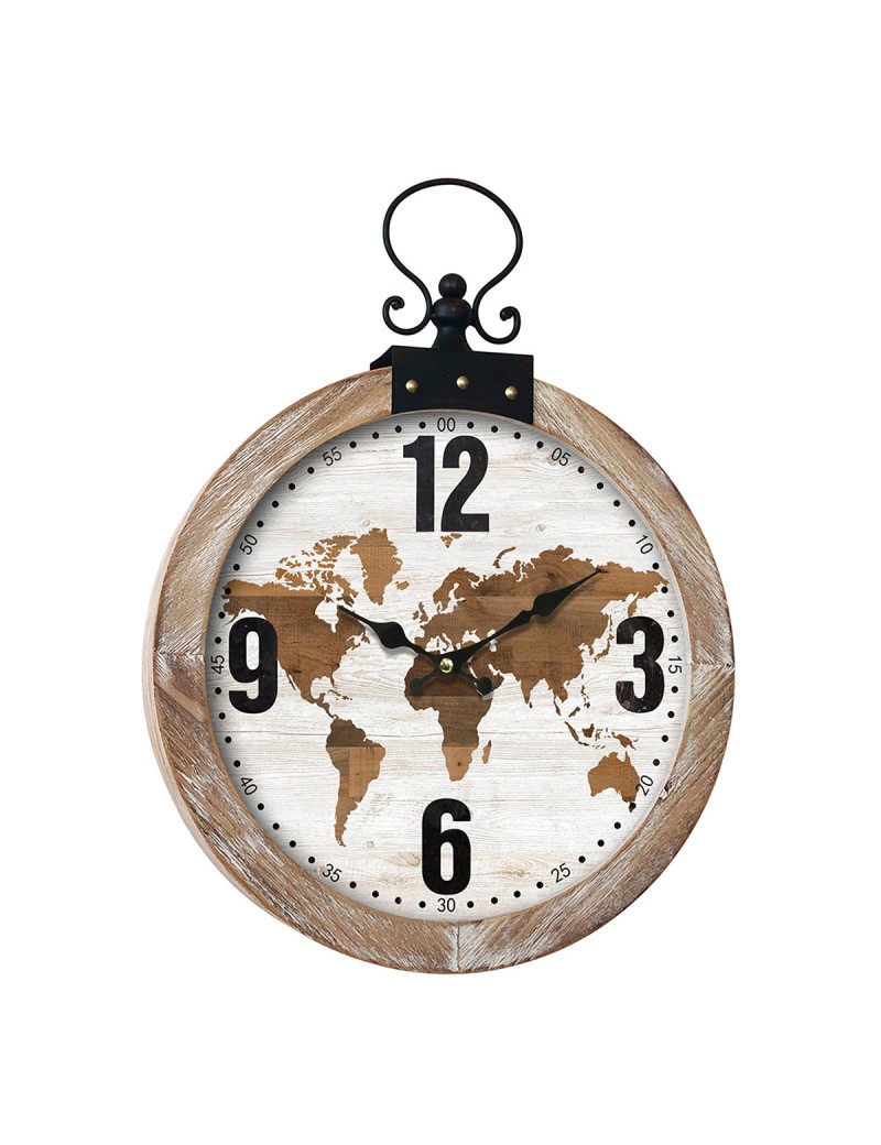 HORLOGE Murale en Bois et Métal de 40cm Décoration Mappe Monde