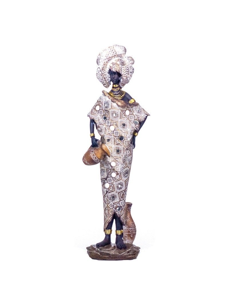 Décoration Style ethnique Inspiration Afrique, statue de 46cm de hauteur, Femme tenue écru Brun avec des Jarres.