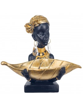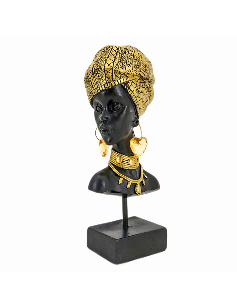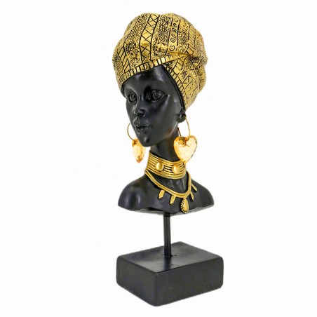 Décoration d'Intérieur Buste de Femme sur socle Inspiration Ethnique Afrique couleur Or et noir hauteur 22cm.