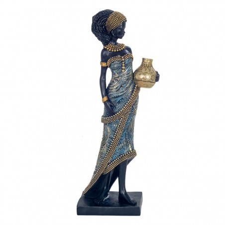 Femme avec Jarre Statue Décoration 31cm Inspiration Voyage Afrique.