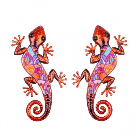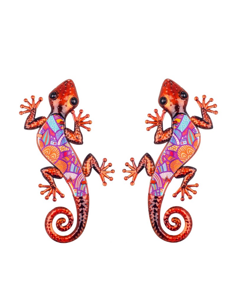 Salamandre Gecko Lézard un Lot de 2 en Métal et Verre Couleur Ocre Cuivré