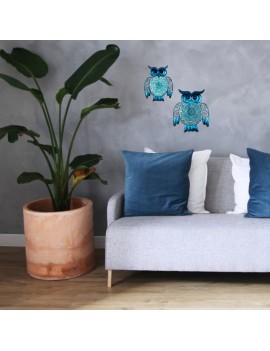 Une Applique Chouette en Métal et Verre d'une belle couleur Bleu pétrole, avec un motif Mandala.